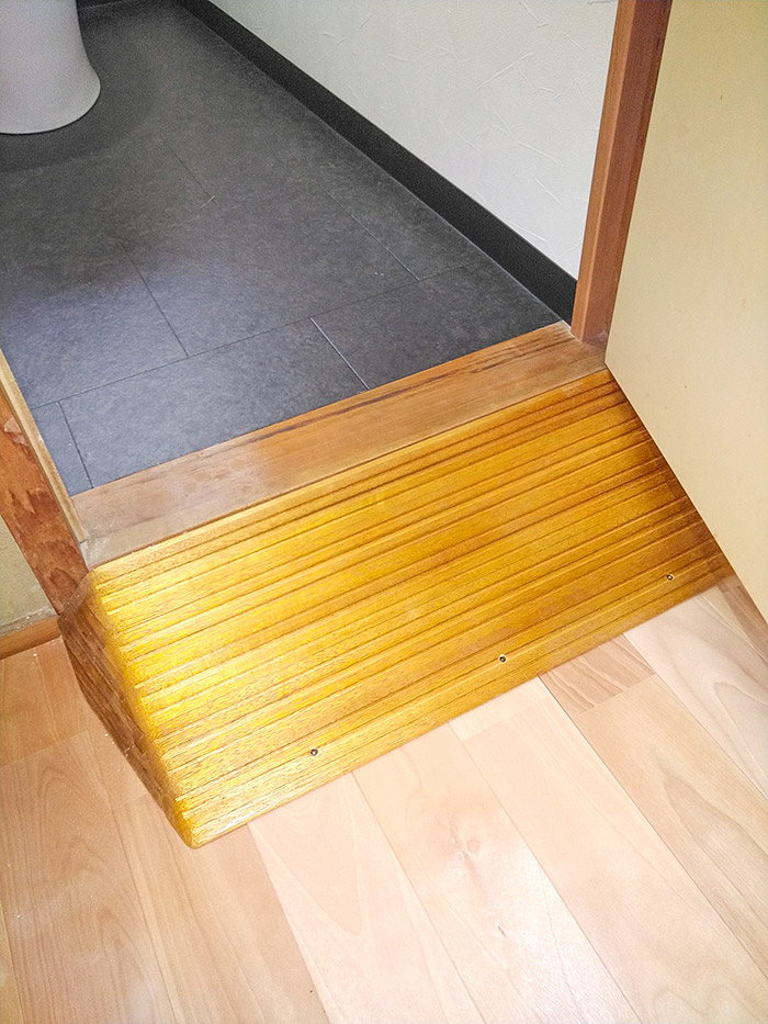 入口の敷居段差が高かったですが、スロープで解消されたことが嬉しいです。